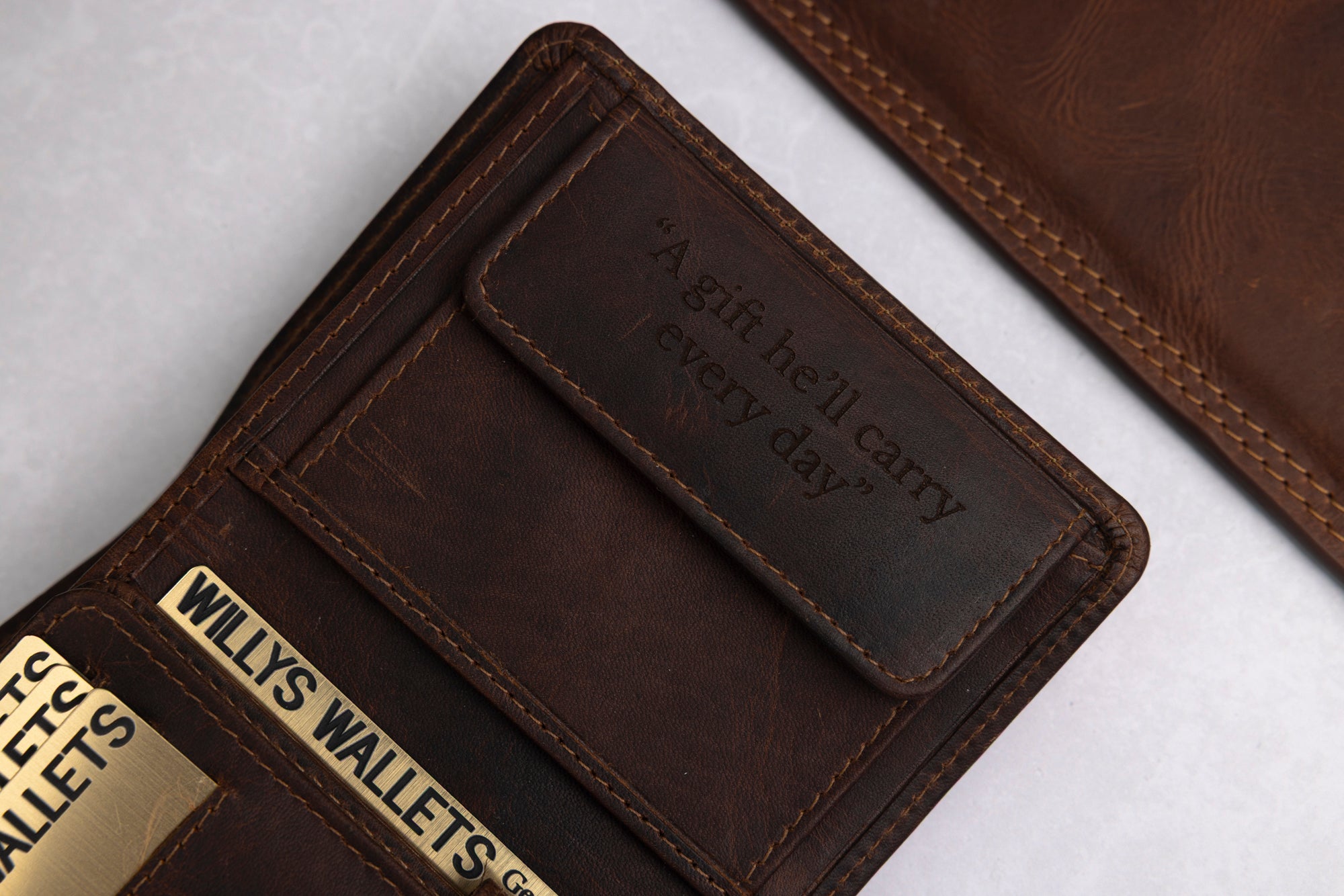 At Willys Wallets, we believe the best gifts are personal. Every wallet we create is crafted from quality leather and finished with engraving that tells a story. From names and initials to handwritten messages, symbols, or designs that are completely your own.